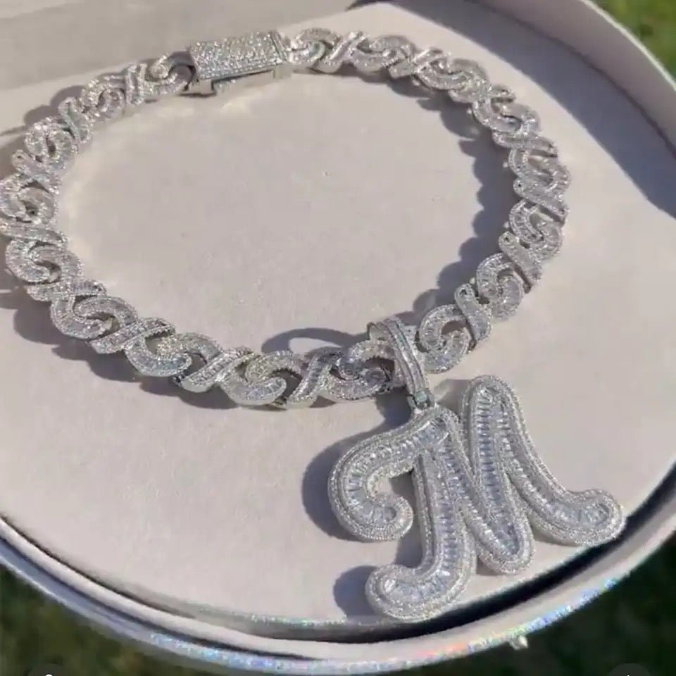 Discover a stunning blend of elegance and personal expression with our Glittering Initial Cubic Zirconia Infinity Cuban Link Necklace. This enchanting piece is designed for the modern individual who seeks to shine with sophistication while celebrating their unique identity.