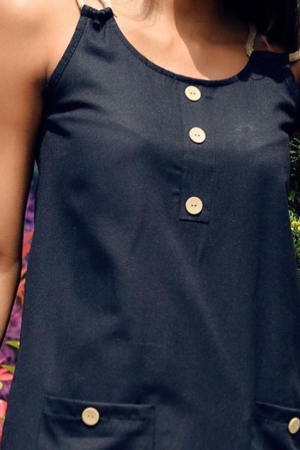 Trendy Design: Featuring eye-catching decorative buttons and double spaghetti straps, this mini dress exudes elegance and sophistication, making it a perfect choice for any occasion.