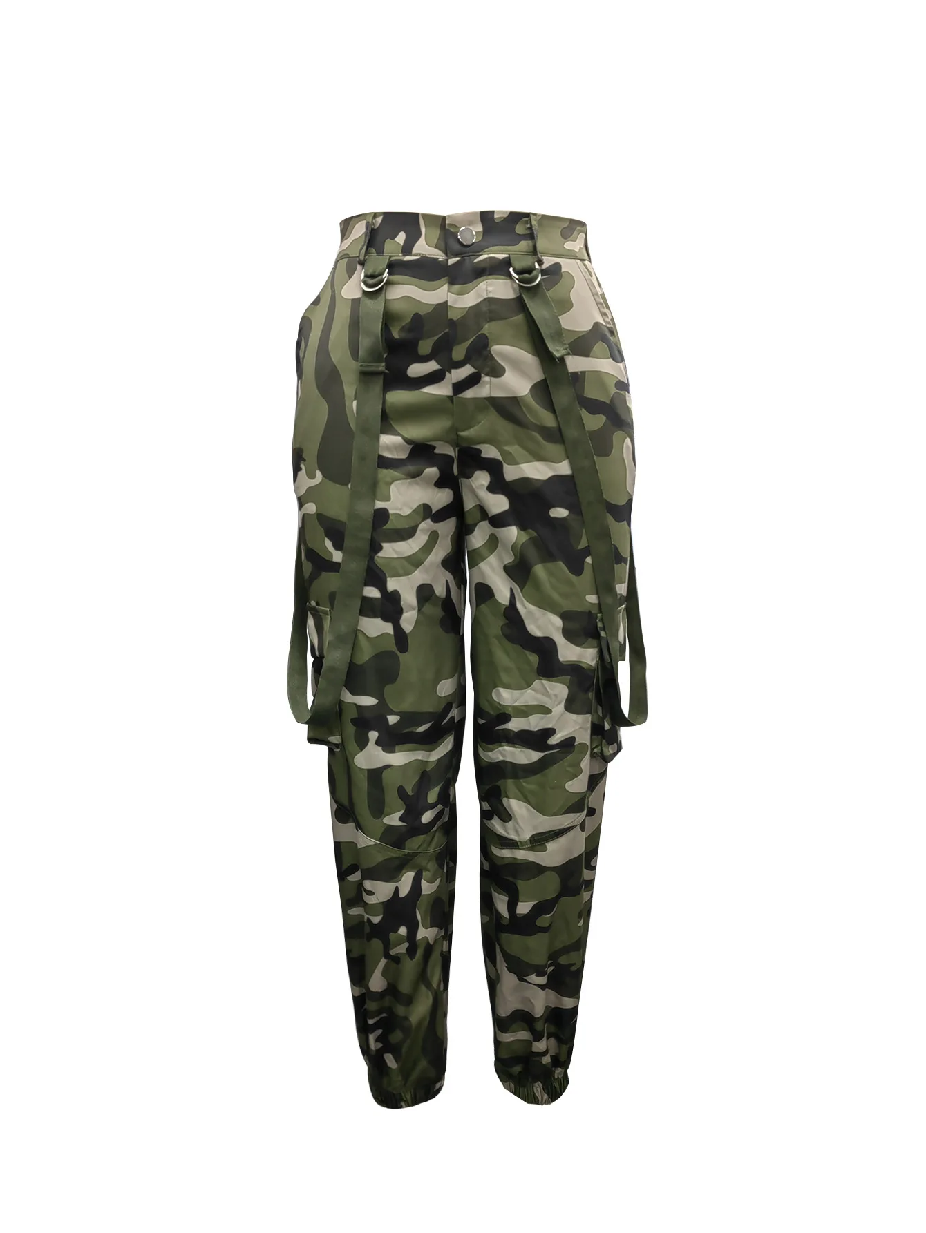 Chic Y2K Green Camouflage High-Waisted Cargo Pants for Women