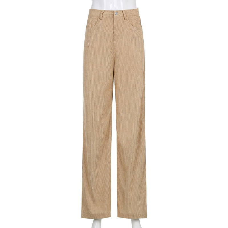 Step into a world of comfort and style with our Retro High-Waisted Loose-Fit Wide-Leg Corduroy Trousers. Designed for the modern woman, these trousers effortlessly blend timeless elegance with contemporary flair, making them an essential staple for any wardrobe.