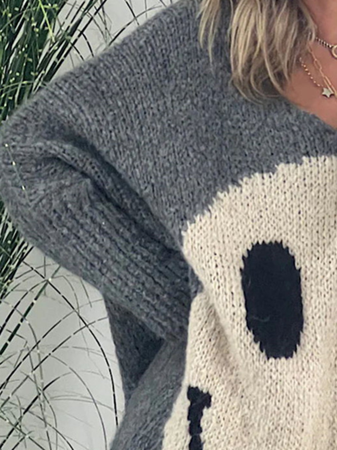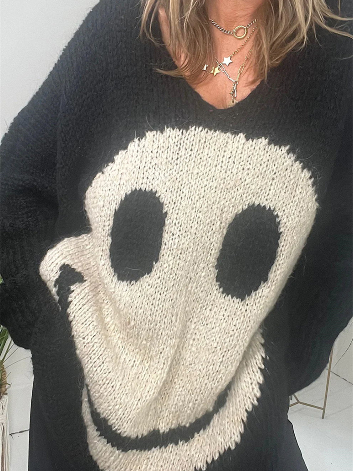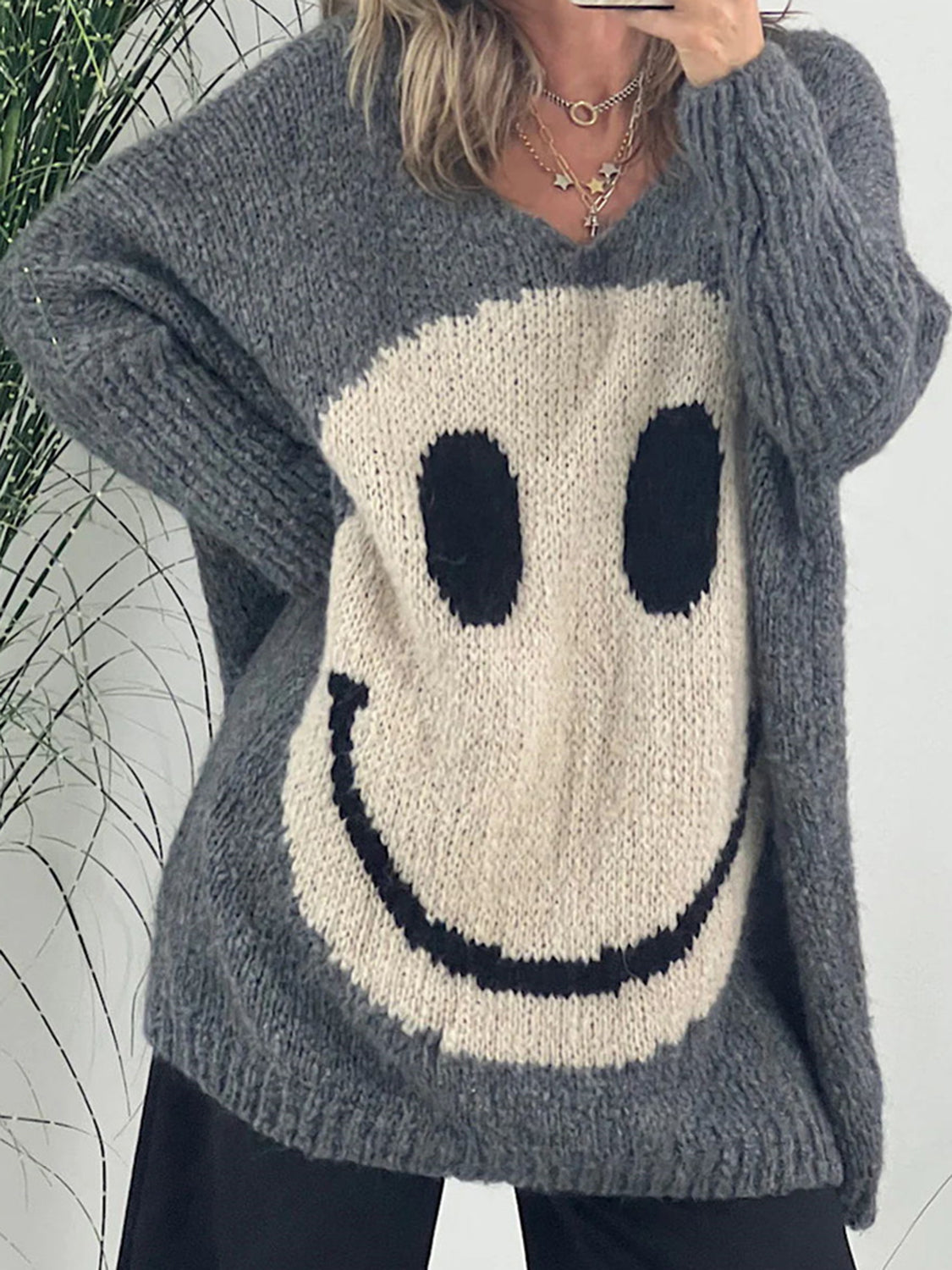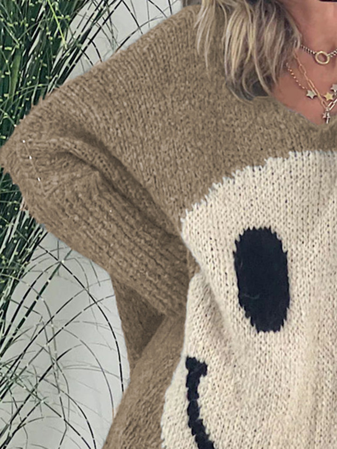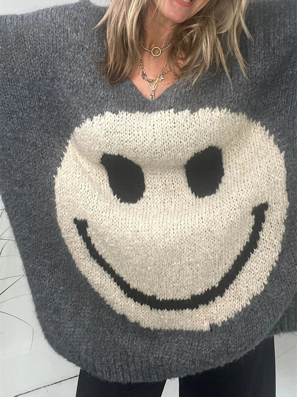 Joyful V-Neck Long Sleeve Knit Sweater for Stylish Comfort