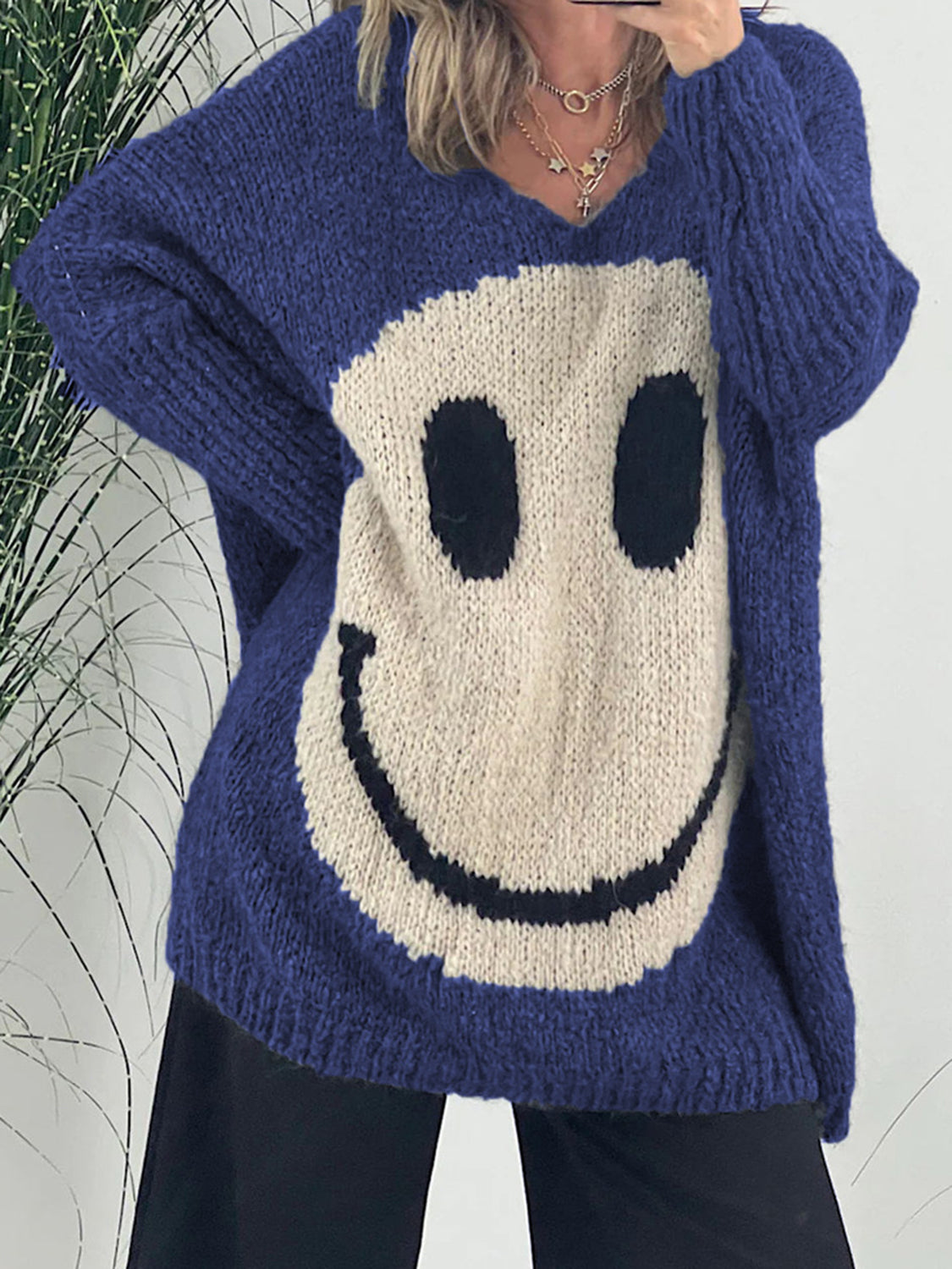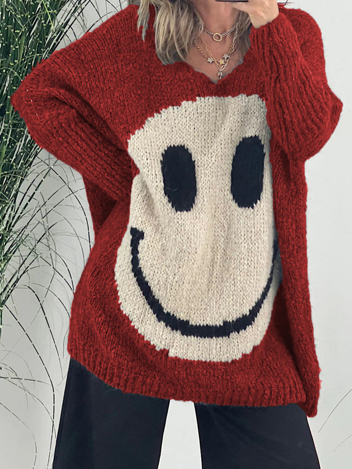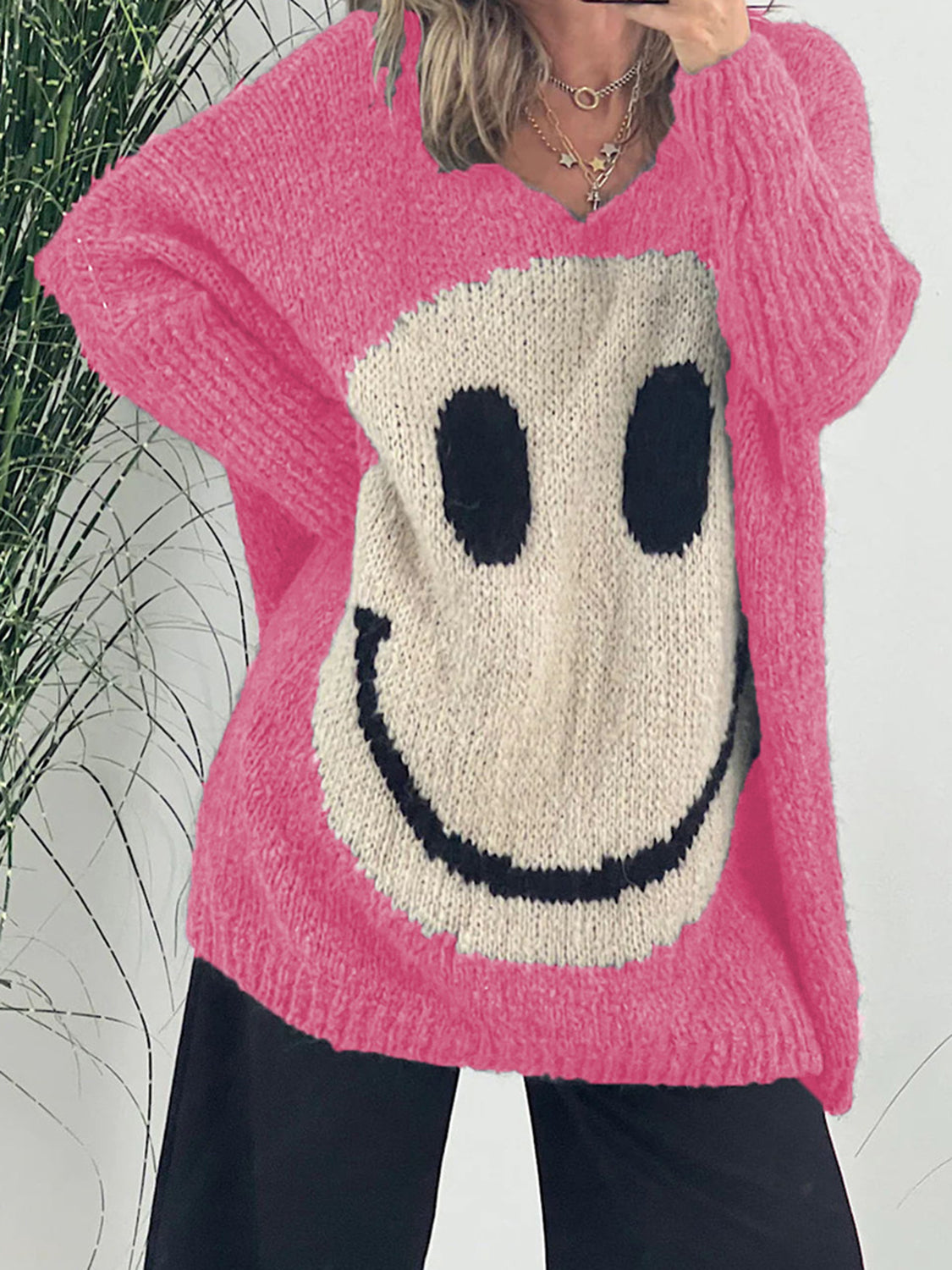 Introducing the Joyful V-Neck Long Sleeve Knit Sweater for Stylish Comfort, where elegance meets everyday functionality. This beautifully crafted sweater is designed to be a wardrobe essential, providing a cheerful pop to your attire while ensuring you stay cozy throughout your day.